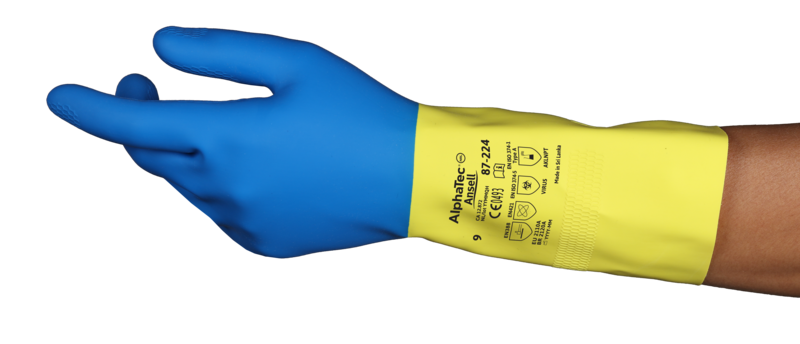 Conhecido anteriormente como Chemi-Pro. Luvas de trabalho de dois tons com duplo mergulho, com uma combinação de neoprene e borracha natural.