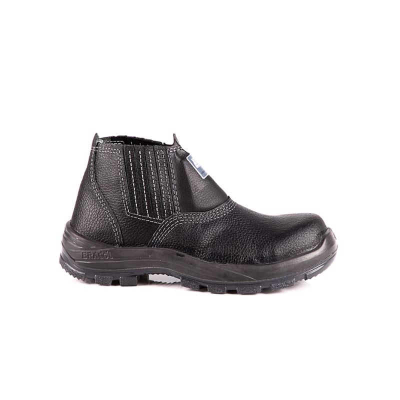 Botina de segurança fechamento em elástico lateral recoberto, cabedal construído em couro estampa relax resistente ao corte (CR), com forração interna no colarinho em não tecido, dorso forrado em não tecido e acolchoado com espuma, forração interna da gáspea e cano em não tecido, biqueira em composite, palmilha de montagem em fibra de aramida resistente a perfuração costurada pelo sistema strobel e sobrepalmilha de conforto em EVA. Solado em poliuretano (PU) bidensidade, injetado diretamente ao cabedal, resistente a escorregamento (SRC), óleo combustível (FO) e com absorção de impacto na região calcânea (E).